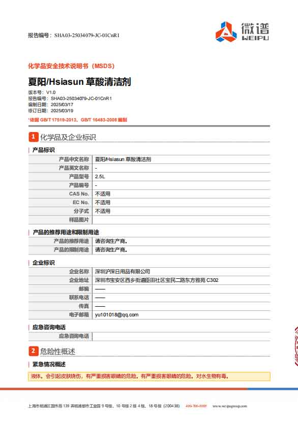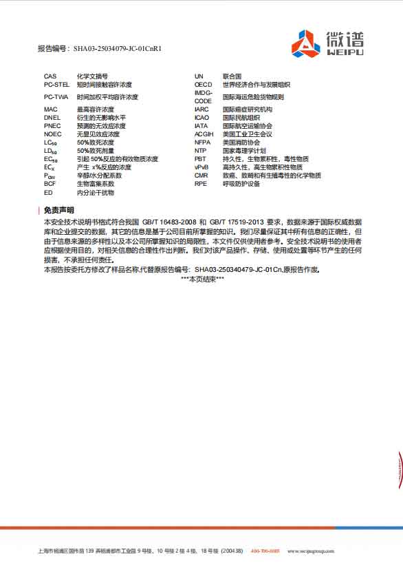 化学品安全技术说明书(MSDS)